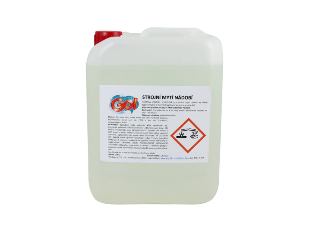 GO! strojové umývanie riadu 5L Nepenivý alkalický prostriedok pre strojové umývanie riadu vo všetkých typoch umývačiek s možnosťou aplikácie tekutých prostriedkov. Prostriedok je určený len pre profesionálne použitie. Dávkovanie: 2-3g prípravku na 1 liter vody pomocou dávkovacieho čerpadla do umývacej zóny umývačky. Prípravok obsahuje: Hydroxid draselný Zloženie: 5% alebo viac, ale menej ako 15%: hydroxid draselný, fosfáty; menej ako 5%: EDTA a jej soli, 2-bromo-2- nitropropane-1,3-diol. NEBEZPEČENSTVO: Spôsobuje vážne poleptanie kože a poškodenie oči. Noste ochranné rukavice/ochranný odev/ochranné okuliare. PO POŽITÍ: vypláchnite ústa. NEVYVOLÁVAJTE zvracanie. PRI KONTAKTE S POKOŽKOU (alebo vlasmi): Vyzlečte všetky kontaminované časti odevu. Pokožku ihneď opláchnite vodou alebo sprchou. PO ZASIAHNUTÍ OČÍ: Niekoľko minút ich opatrne vyplachujte vodou. Ak používate kontaktné šošovky a je to možné, odstráňte ich. Pokračujte vo vyplachovaní. Okamžite volajte TOXIKOLOGICKÉ INFORMAČNÉ CENTRUM. Zneškodnite obsah/nádobu v súlade s miestnymi predpismi odovzdaním osobe oprávnenej na likvidáciu odpadu alebo na miesto určené obcou. Spotrebujte do 24 mesiacov od dátumu výroby uvedeného na obale.Diskusia