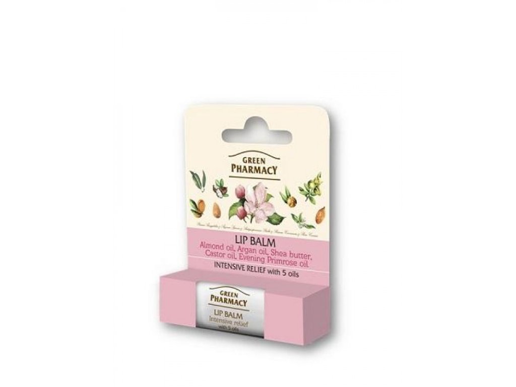 Balzam na pery Green Pharmay pre intenzívnu úľavu obsahuje 5 rastlinných olejov: argánový, bambucké maslo, mandľový, ricínový a pupalkový. Je obohatený o vitamín E. Intenzívne hydratuje a zvláčňuje pokožku pier, zanecháva príjemnú osviežujúcu chuť. V lete chráni pred UV žiarením, v zime zabraňuje suchosti a popraskaniu pier. Neobsahuje silikóny, parabény a farbivá. Ochranný faktor pred UV žiarením (SPF) 10.Diskusia