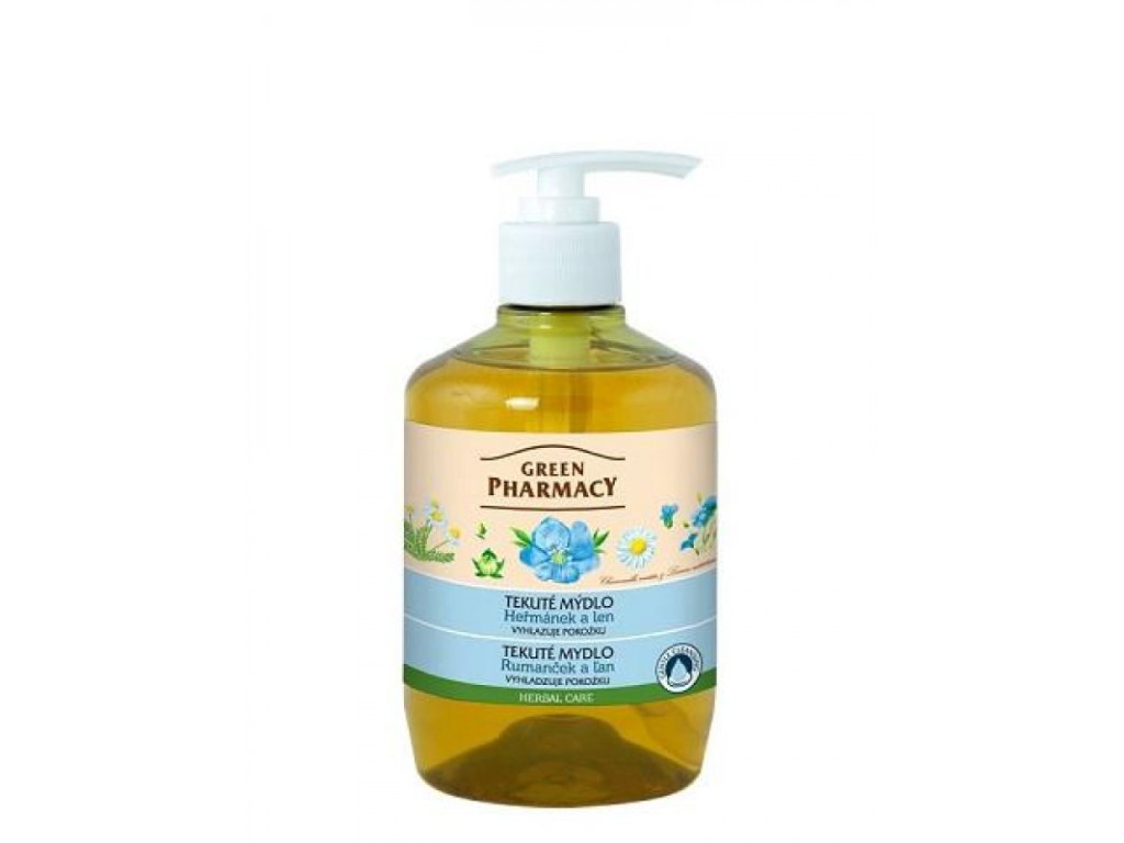 Green Pharmacy tekuté mydlo - vyhladzuje pokožku Rumanček a ľan Šetrne čistí a vyhladzuje pokožku ľanovým olejom a extratkom z rumančeka (harmančeka)