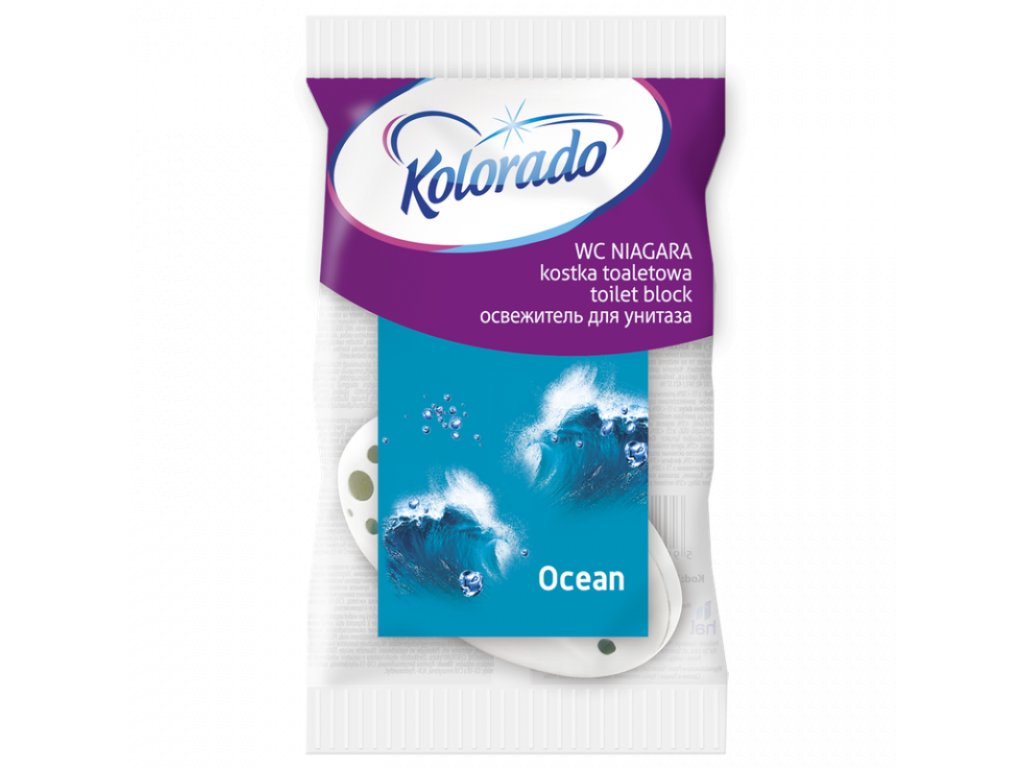 Kolorado WC Blok Niagarský Oceán 35g Jednofázový WC blok Kvalitný, biely košík Hygienicky čistí a vytvára penu Zabraňuje usadzovaniu vodného kameňa Funkčnosť až 3 týždne