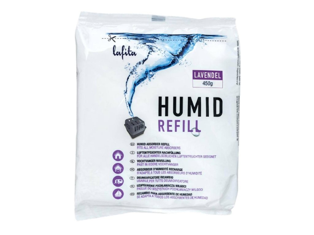 Náplň do pohlcovača vlhkosti LAFITA levanduľa 450g Lafita náhradná náplň do absorbéra vlhkosti 450 g s príjemnou vôňou levandule. Granulát absorbuje vlhkosť zo vzduchu, ktorý je uložený v plastovej nádobe absorbéra. Účinnosť granulátu postupne klesá a po vyčerpaní jeho účinkov je potrebné ho vymeniť. Zabraňuje kondenzovaniu vody, vytváraniu zápachu a plesni. Trvanlivosť granulátu v miestnosti do 20 m2 je približne 2 až 5 mesiacov v závislosti od vlhkosti a teploty vzduchu v miestnosti. Dá sa použiť vo všetkých vymeniteľných odvlhčovačoch. Materiál: chlorid vápenatýDiskusia