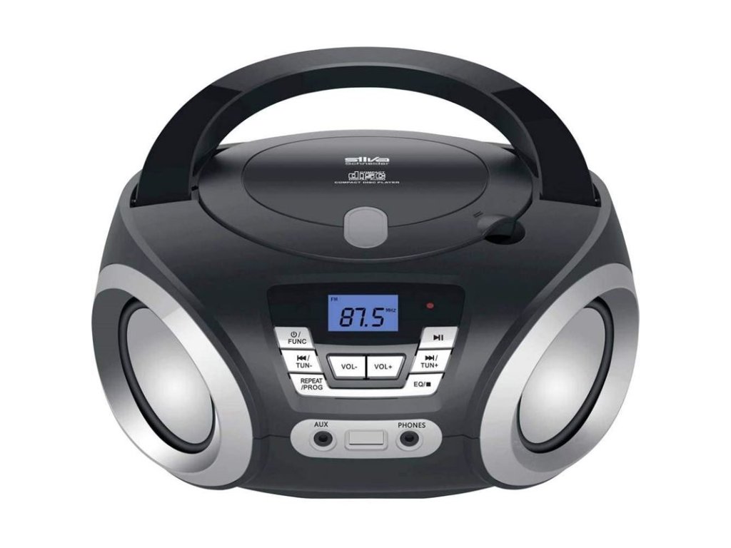 Okrem kompaktného dizajnu vám prenosné rádio Silva Schneider PCD19.1 ponúka viacero možností na prehrávanie vašej obľúbenej hudby. Okrem FM rádia s pamäťou pre 30 staníc, AUX vstupu má zariadenie aj CD prehrávač.Batériová alebo sieťová prevádzka vám umožní počúvať hudbu doma, ale aj počas prázdninových výletov. Jasný LCD displej s modrým podsvietením umožňuje pohodlné ovládanie činnosti prístroja a tlačidlá na prednej strane prehrávača umožňujú rýchlu zmenu nastavení. Zabudovaný ekvalizér vám pomôže naladiť zvuky podľa vašich osobných hudobných preferencií. Teleskopická anténa je zase užitočná na mieste, kde môžu byť problémy s pokrytím signálu.Charakteristika a technické údaje:Prenosné rádio/CD prehrávačFM PLL tunerAutomatické vyhľadávanie kanálovPamäť na 30 stanícTeleskopická anténaCD/CD-R/CD-RWPreskočiť/vyhľadať (ďalej/späť)Funkcia opakovaného prehrávaniaProgramovateľné prehrávanie (20)40 W p.m.p.o.5 dostupných nastavení ekvalizéraLCD displej s modrým podsvietenímDigitálne ovládanie hlasitostiSlúchadlá (3,5 mm)Vstup AUX (3,5 mm)Sieťová a batériová prevádzkaRozmery (Š/V/H): 24/12,1/21,8 cmHmotnosť: cca 1,04 kgRakúska spoločnosť SILVA Schneider so sídlom v Salzburgu bola založená v roku 1968 a v súčasnosti exportuje tovar do viacerých európskych krajín ako sú Nemecko, Česká republika, Slovinsko či Švajčiarsko. Medzi jej hlavné princípy patria inovatívny dizajn produktov, flexibilná logistika, zákaznícky orientované spracovanie služieb, vysoká lojalita zákazníkov, selektívny výber zákazníkov a stabilná ponuka tovaru. V produktovom portfóliu SILVA Schneider sa nachádzajú najmä spotrebiče pre domácnosť a spotrebná elektronika, čo zabezpečuje vysokú kvalitu produktov.Dodatočné parametre