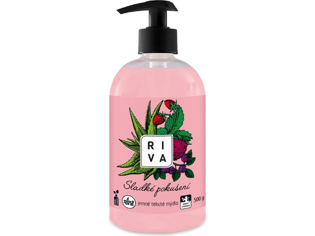 Riva, jemné tekuté mydlo s vonou sladkých plodov, aloe vera a vanilky.