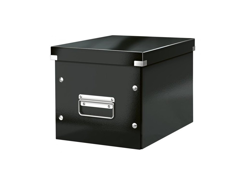 Skladacia archivačná krabica v tvare kocky je ideálna na ukladanie vysokých predmetov alebo vecí oblého tvaru. Veľkostne sa dokonale zmestí do štandardných policových systémov. Vyrobená zo silného kartónu. Laminovaný povrch a kovové prvky na rohoch poskytujú skvelú ochranu, odolné kovové úchyty slúžia na pohodlný prenos. Moderný design, ktorý vyzerá skvelo doma i v kancelárii. Rozmery (š × v × h) 260 × 240 × 260 mm. Farba čierna.Dodatočné parametre